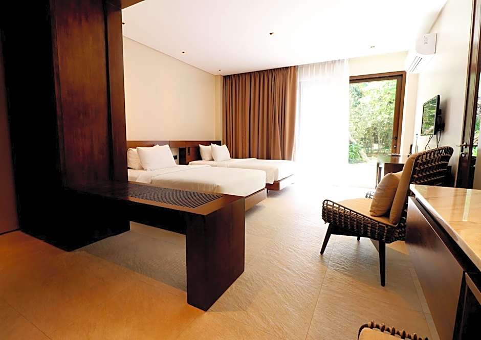 Fitted with a balcony offering garden views, rooms feature a flat-screen TV with cable channels, a personal safe and a wardrobe. Tea/coffee making facilities and a mini-bar are included. The private bathroom comes with hot and cold shower facilities and toiletries. Spacious 35 sqm room can either have 1 King bed or 2 double beds (subject to availability)